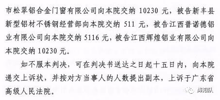三明凤铝系列维权案:诉辉煌公司等四被告,法院判赔250余万